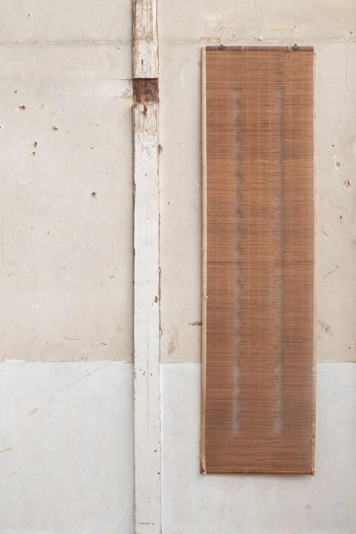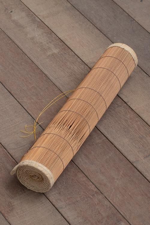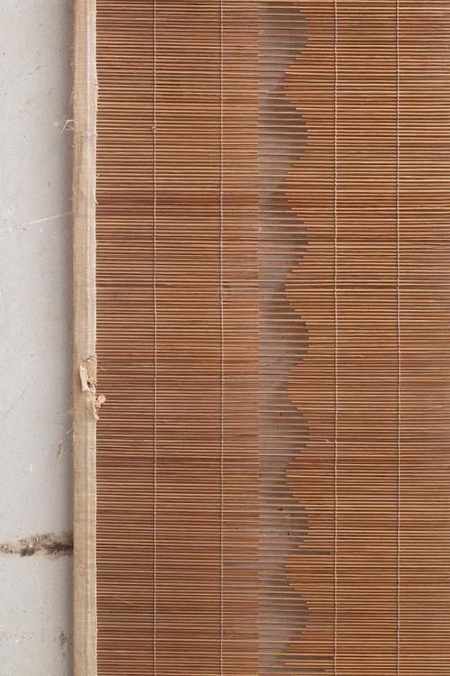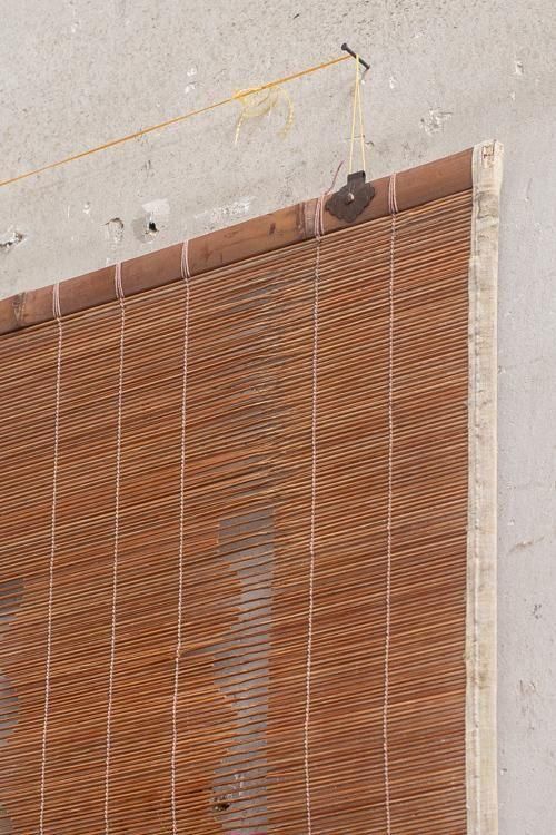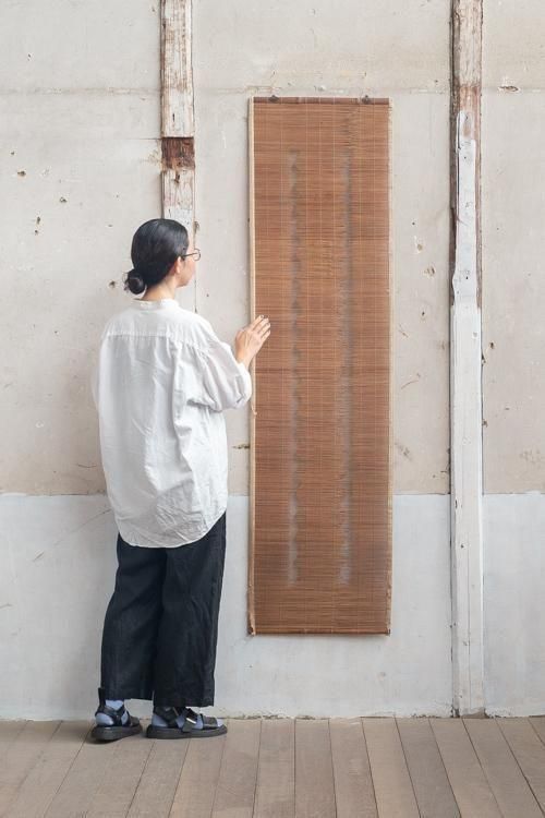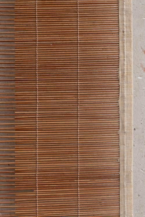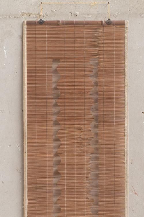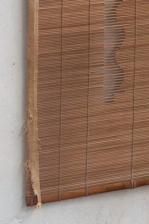 古い御簾。珍しい縦長の形状で、横には麻の帯があしらわれています。 タペストリーとしてもお使いいただけます。