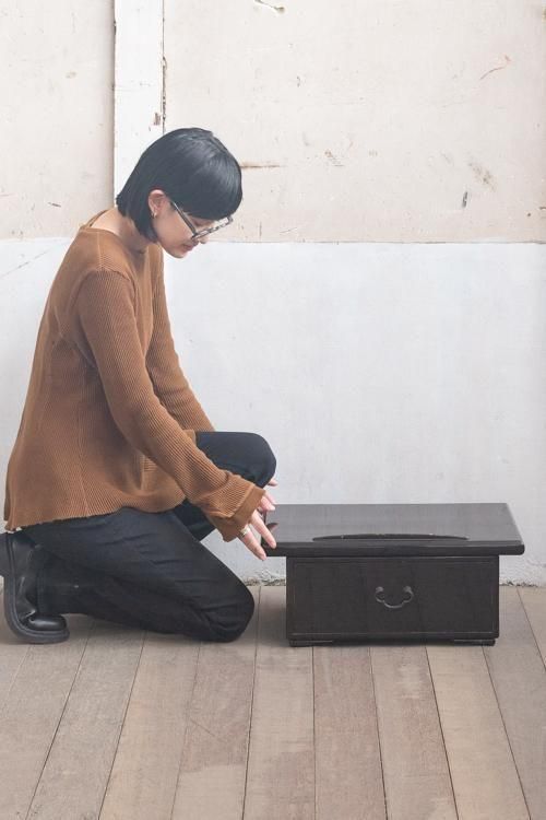 黒い漆塗りのディスプレイ台。