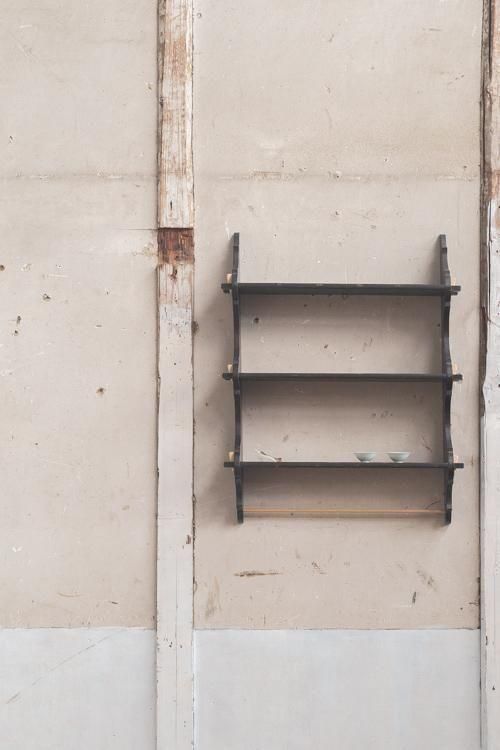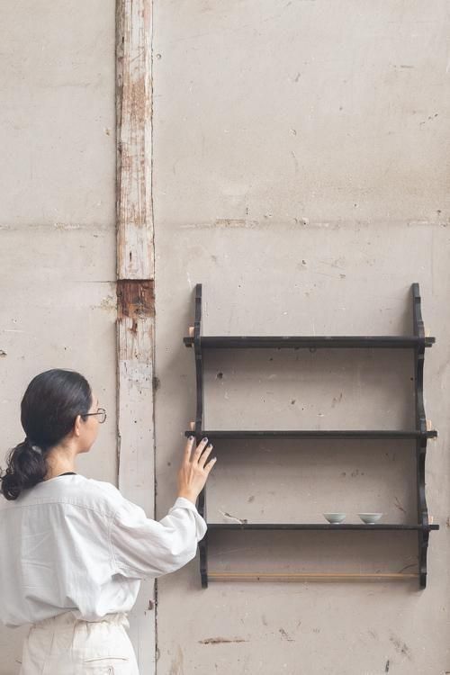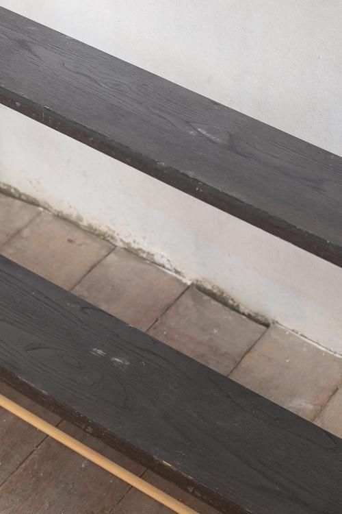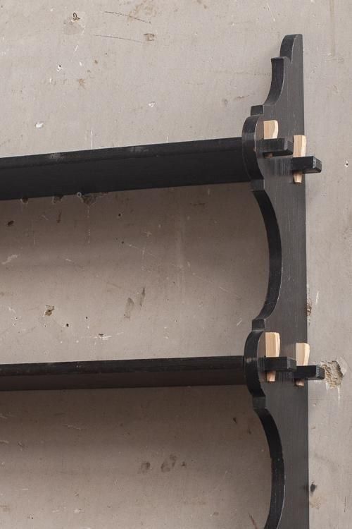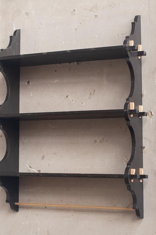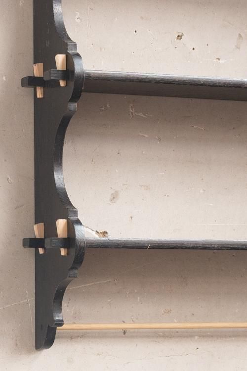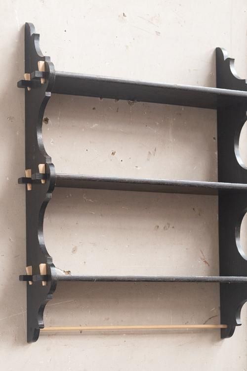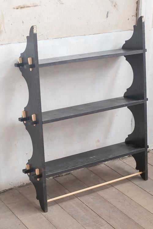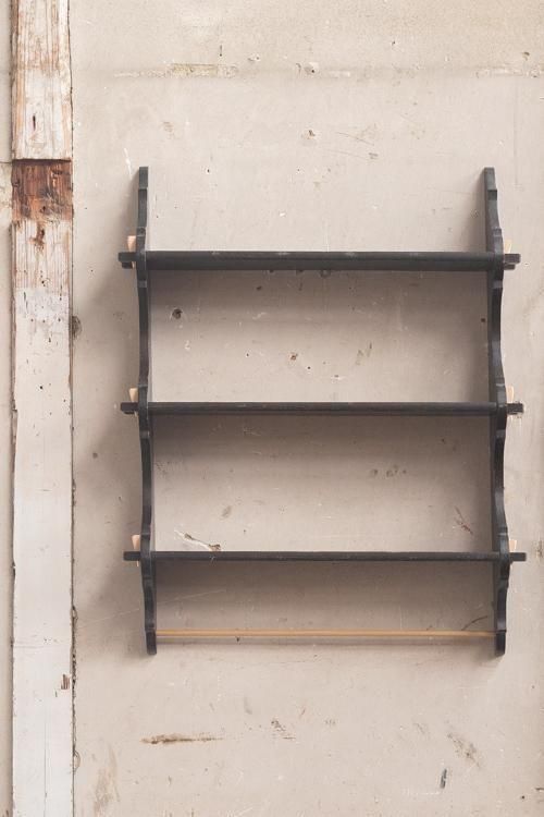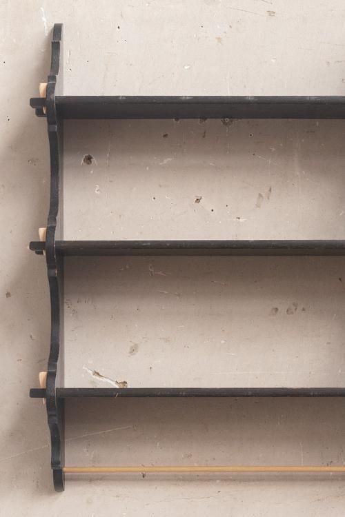 三段の棚とタオルハンガーのついたウォールシェルフ。