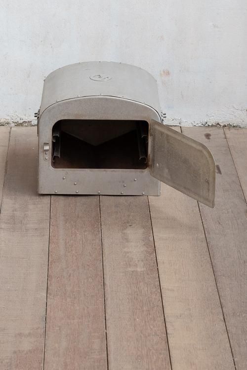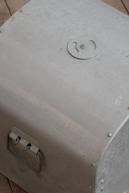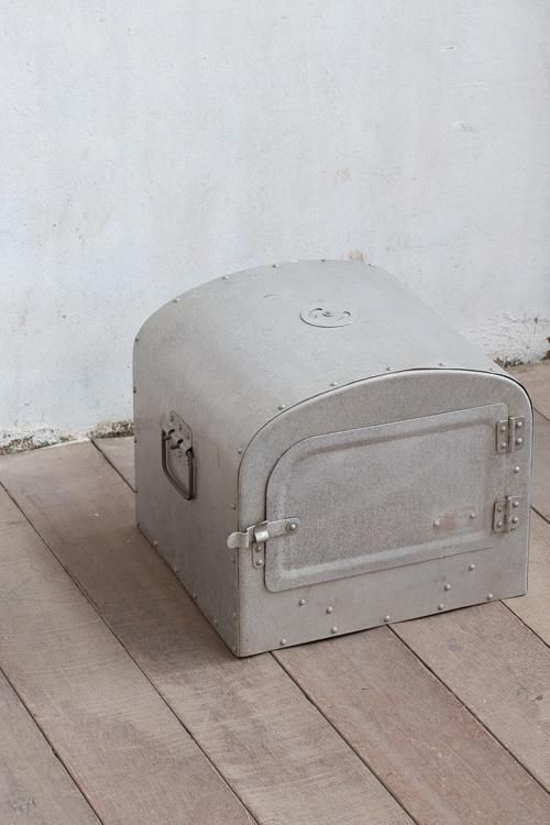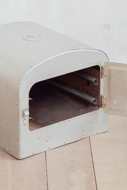 リベットワークの美しい、アルミ製のオーブン。ポストなどにもお使いいただけます。