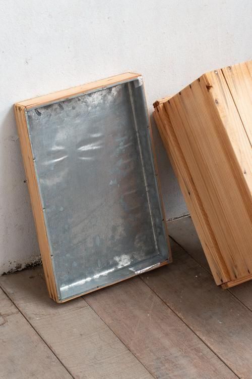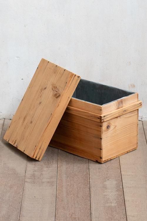 蓋付きの木製茶箱。内側はブリキ貼りです。